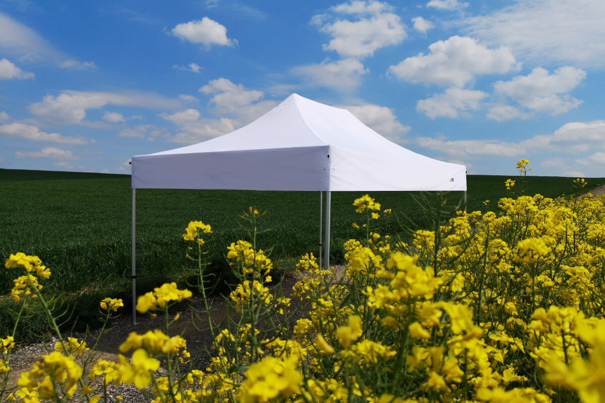- Celková výška: Vďaka impozantnej výške 310 až 340 cm bude váš stan neprehliadnuteľný aj z veľkej diaľky. Zaručuje to skvelú viditeľnosť vašej prezentácie a loga na každom podujatí.