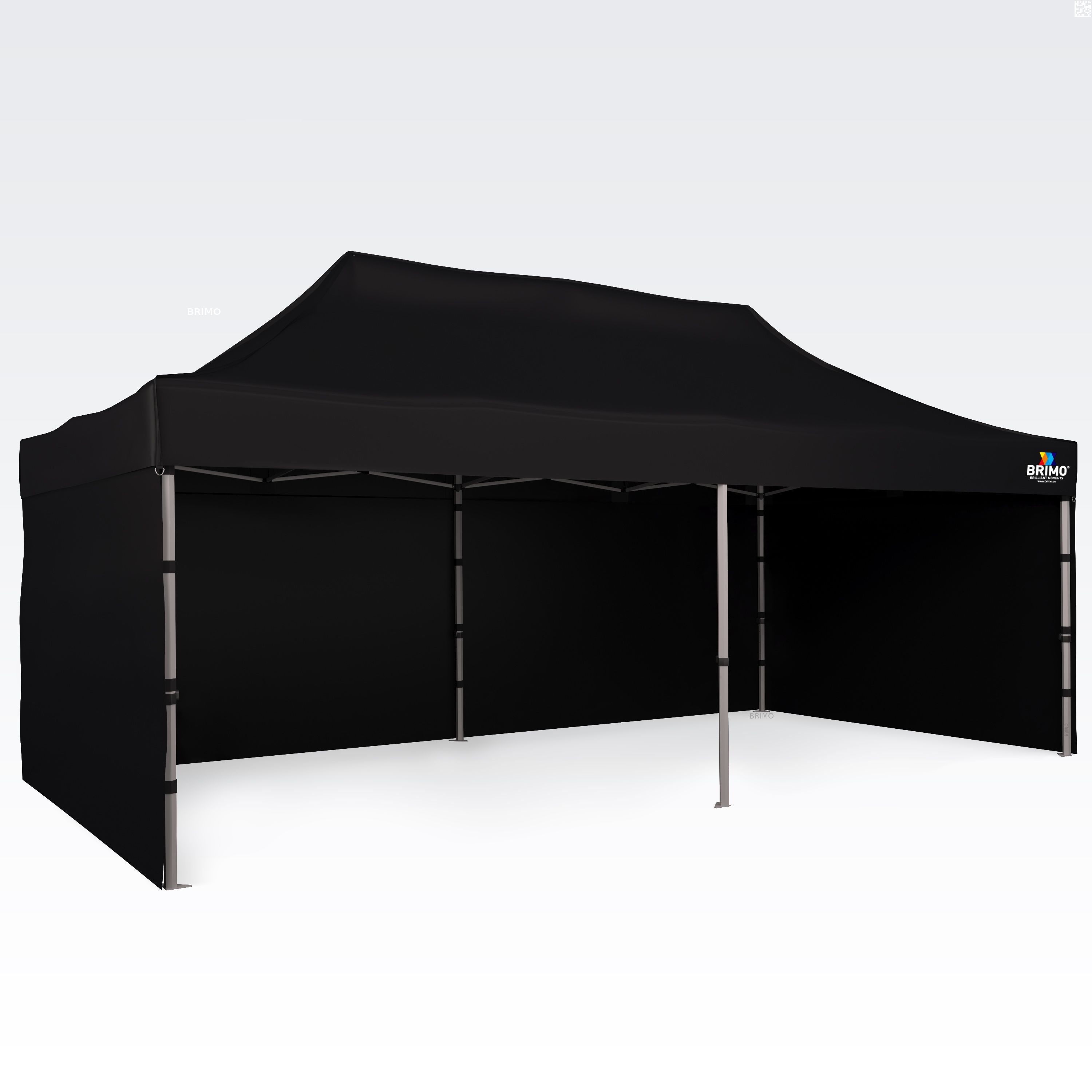 Opláštenie stanu je vyrobené z prémiového, 100 % nepremokavého polyesteru. Flexibilita tohto modelu je kľúčová – každá bočná stena sa samostatne pripevňuje k streche pomocou extra silného, 5 cm širokého suchého zipsu. Ak potrebujete svoj predajný stano na noc bezpečne uzavrieť, napríklad na viacdňovom jarmoku alebo festivale, jednoducho aplikujete štvrtú stenu so zipsom a vytvoríte tak chránené zázemie pre váš tovar.